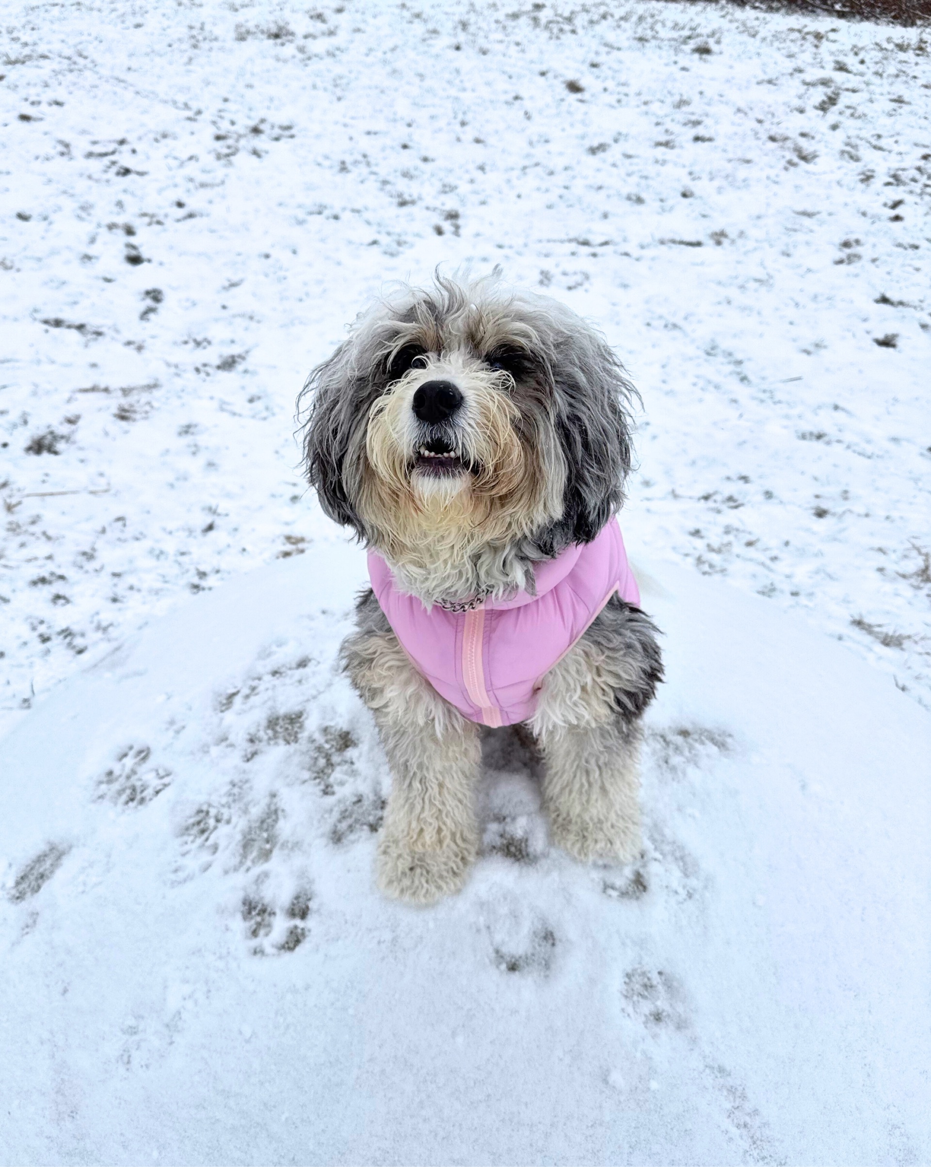 And obviously... they look absolutely adorable. I mean, a fluffy bernedoodle in a pink puffer? Come on. That's content gold right there. 📸