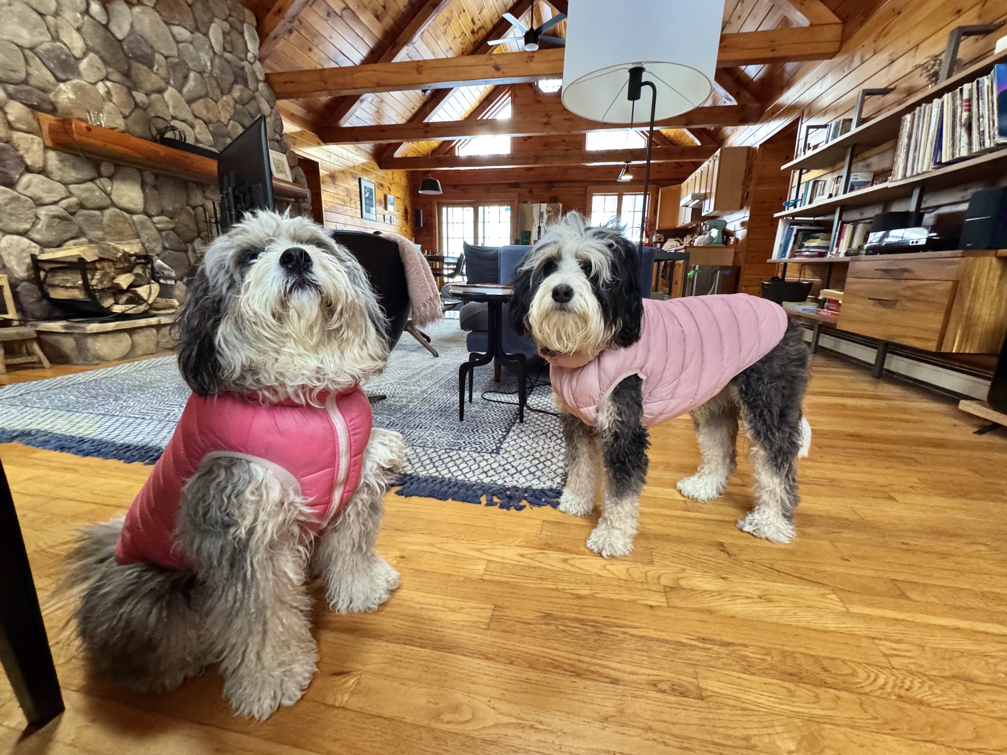 We did eventually make it to the mountain (the whole point of the trip), but honestly? The highlight reel belongs to them. Two fluffy Bernedoodles in matching pink puffer jackets, zipping across a snowy yard like they were born for it. Bailey was a natural. Beso was chaotic. Both were perfect.