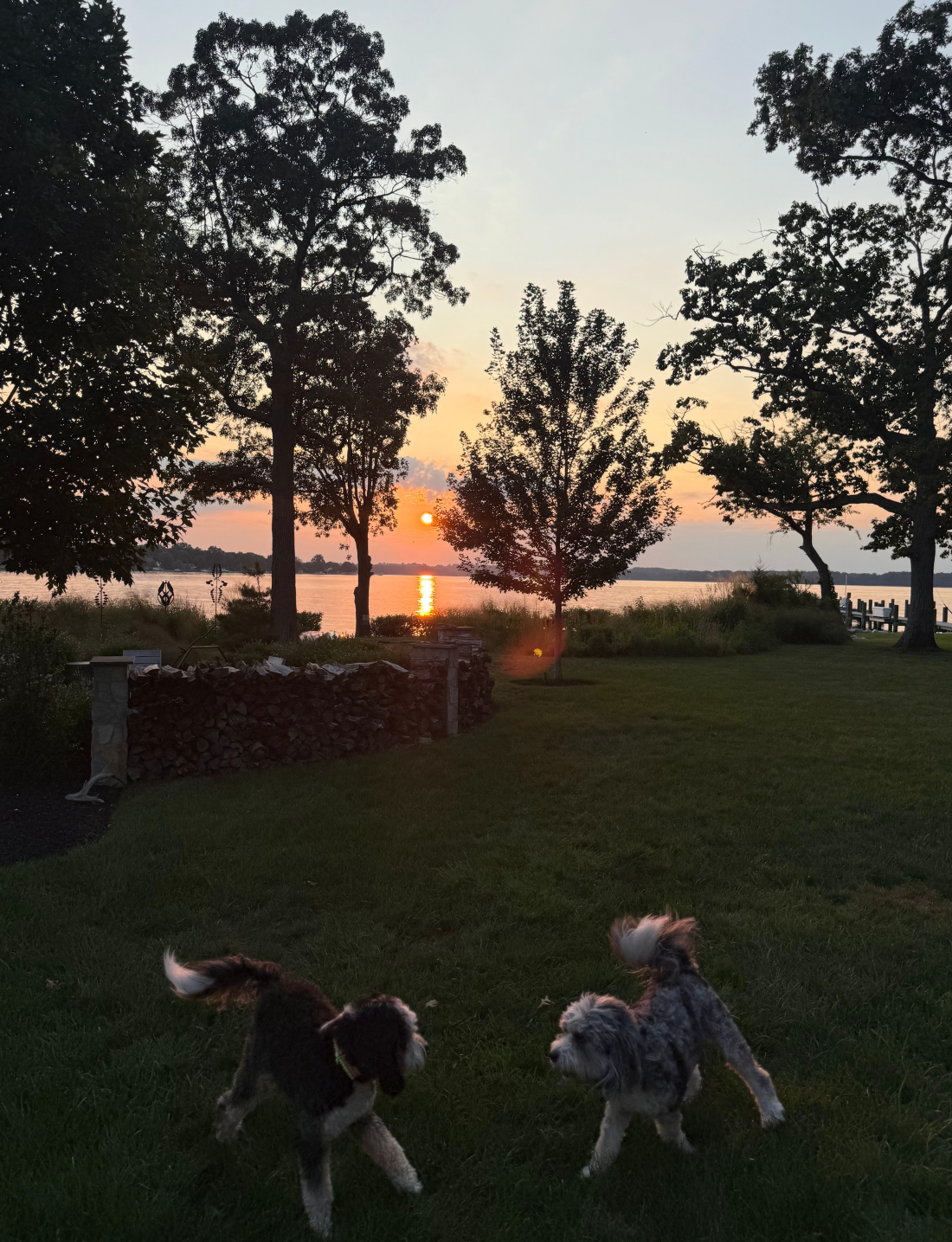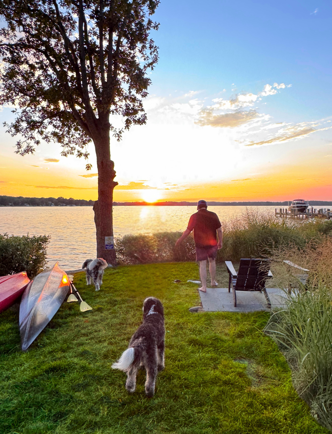 It’s in those golden hours—7am swims in the bay, chasing each other across the grass until the sky turns pink—that we’re reminded how fleeting these seasons are. We’ve loved trading in crowded sidewalks for big, open yards and swapping city sunsets for Adirondack chairs, wine glasses in hand, while the dogs run wild before bedtime.
