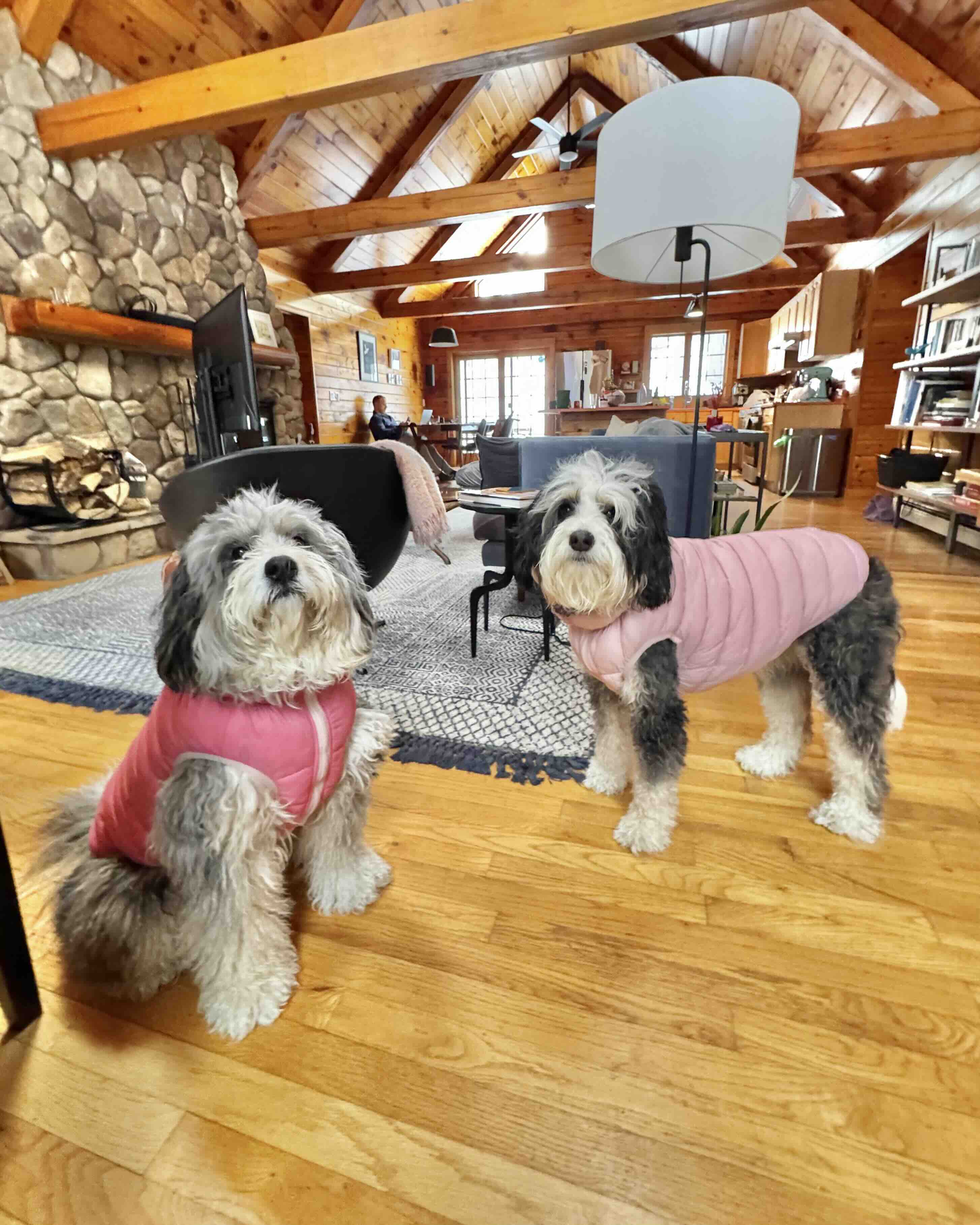 Cabin, Snow & Two Happy Dogs